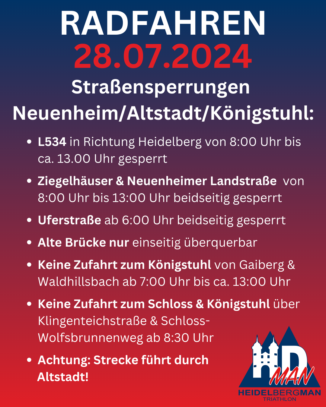 Wir freuen uns darauf, euch bei den Streckenchecks zu sehen und gemeinsam die letzten Vorbereitungen für den Heidelbergman Triathlon zu treffen. Lasst uns zusammen stark sein und dieses Rennen rocken!